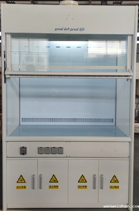 结构为上下分体连接式设计。单台通风柜风量300m³-500m³/h。采用电动、手动、随动一体节能型通风柜。风幕式通风柜工作时,杜绝通风柜内有毒有害气体溢出,同时阻止室内空气进入通风柜内,保持实验室内的温湿度平稳,实现节能。通风柜的补风采用室外自然风补入到通风柜内,严禁采用动力补风。人体感应探测器检测通风柜视窗前1.5m*0.5m范围,无人工作时视窗会自动下降到最底部,保证安全。通风柜满足通风要求时,单台噪音≤45dB。